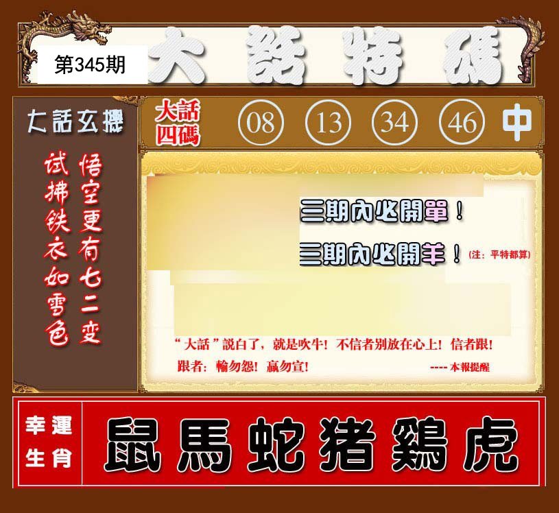 | 344期推荐⑤肖:蛇猪虎牛兔 |