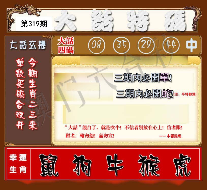 312期六肖中特羊蛇虎龙狗猴开:鸡21
