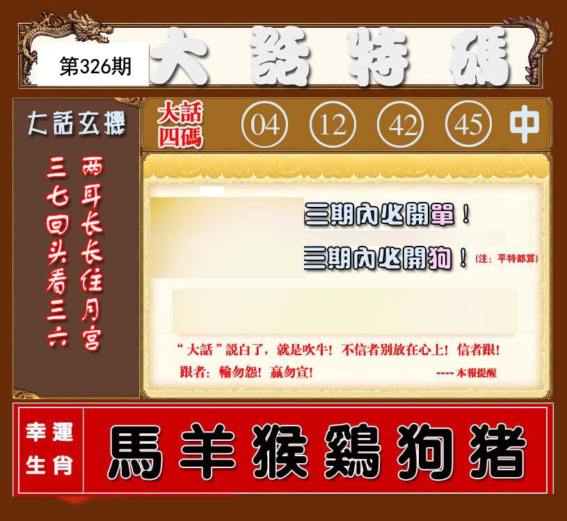 | 321期推荐⑤肖:狗鸡猴龙蛇 |