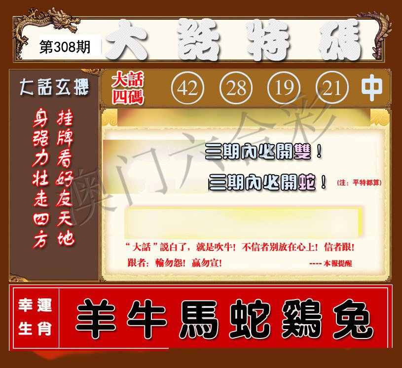 302期 平特一肖 『 蛇蛇蛇 』  |